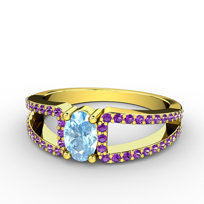 Akuamarin ve ametist 14 ayar altın yüzük