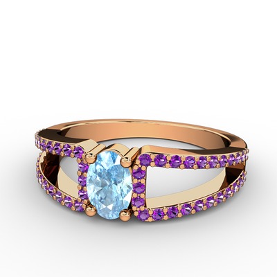 Akuamarin ve ametist 18 ayar rose altın yüzük