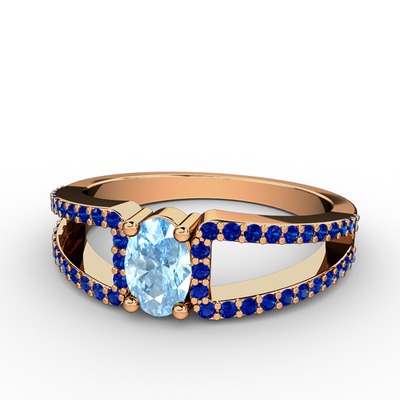 Akuamarin ve lab safir 14 ayar rose altın yüzük