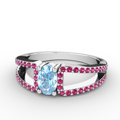 Akuamarin ve rodolit garnet 8 ayar beyaz altın yüzük