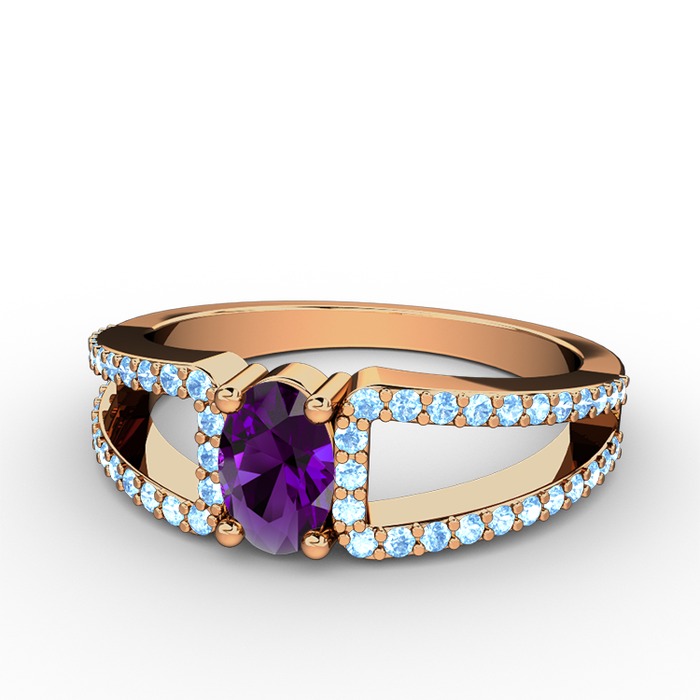 Ametist ve akuamarin 18 ayar rose altın yüzük