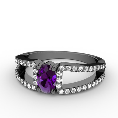 Ametist ve beyaz zirkon 925 ayar siyah rodyum kaplama gümüş yüzük