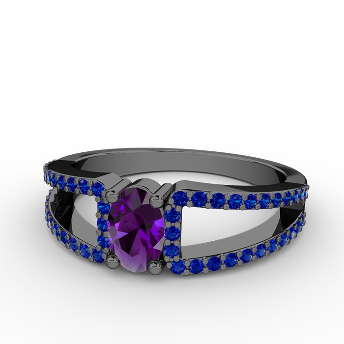 Ametist ve lab safir 925 ayar siyah rodyum kaplama gümüş yüzük