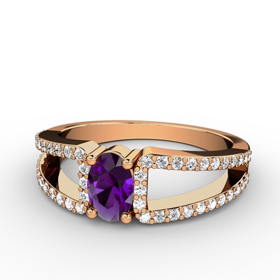 Ametist ve pırlanta 18 ayar rose altın yüzük (0.44 karat)