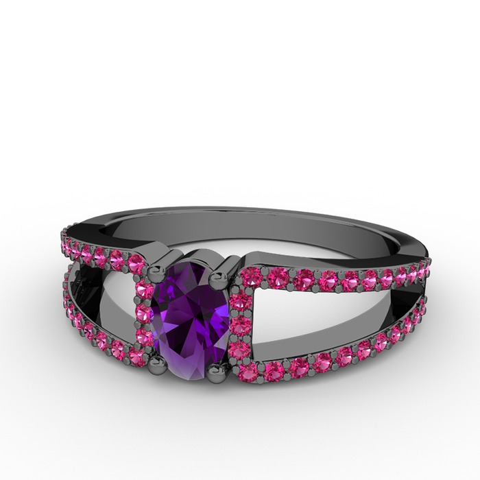 Ametist ve rodolit garnet 925 ayar siyah rodyum kaplama gümüş yüzük