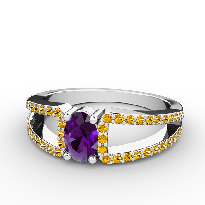 Ametist ve sitrin 18 ayar beyaz altın yüzük