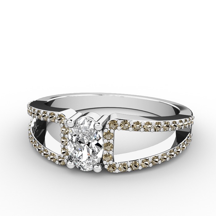Beyaz zirkon ve dumanlı kuvars 14 ayar beyaz altın yüzük