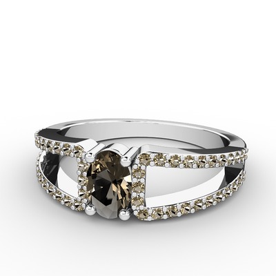 Dumanlı kuvars 8 ayar beyaz altın yüzük