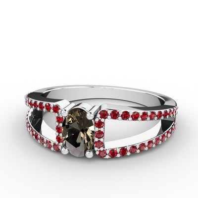 Dumanlı kuvars ve garnet 8 ayar beyaz altın yüzük