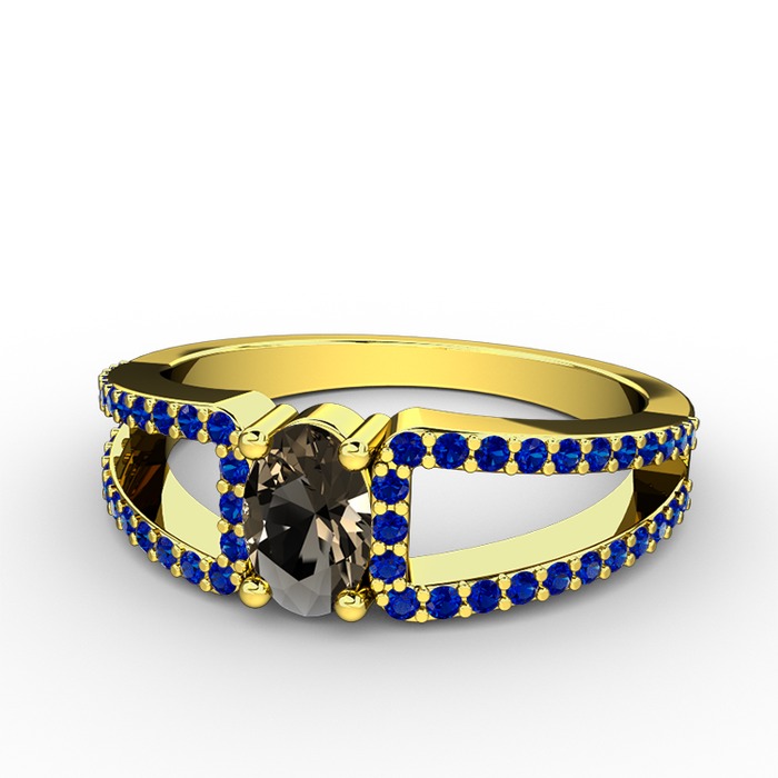 Dumanlı kuvars ve lab safir 18 ayar altın yüzük