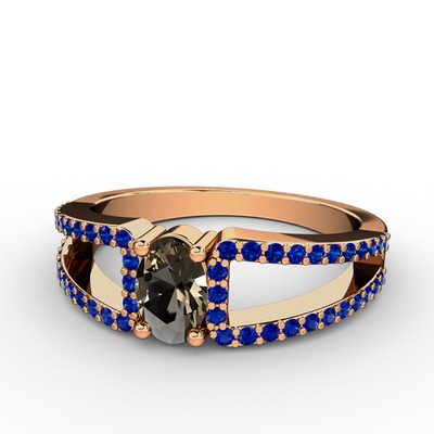 Dumanlı kuvars ve lab safir 8 ayar rose altın yüzük