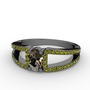 Dumanlı kuvars ve peridot 925 ayar siyah rodyum kaplama gümüş yüzük