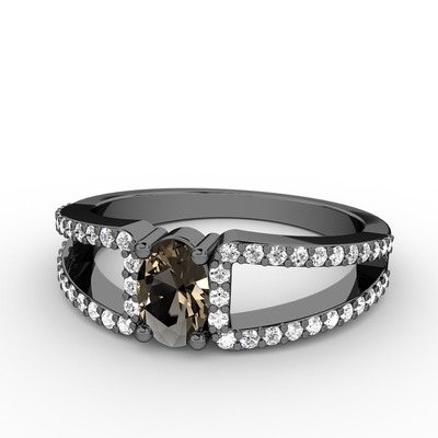 Dumanlı kuvars ve pırlanta 925 ayar siyah rodyum kaplama gümüş yüzük (0.44 karat)