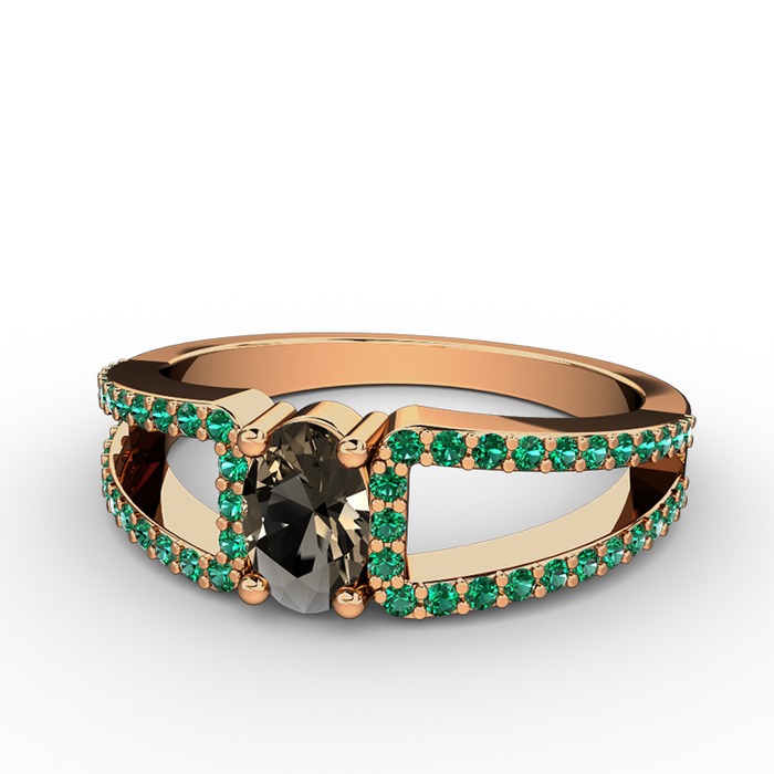 Dumanlı kuvars ve yeşil kuvars 925 ayar rose altın kaplama gümüş yüzük