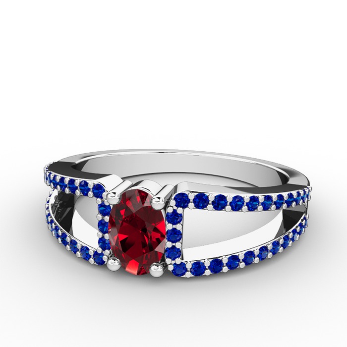 Garnet ve lab safir 14 ayar beyaz altın yüzük