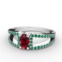 Garnet ve yeşil kuvars 14 ayar beyaz altın yüzük