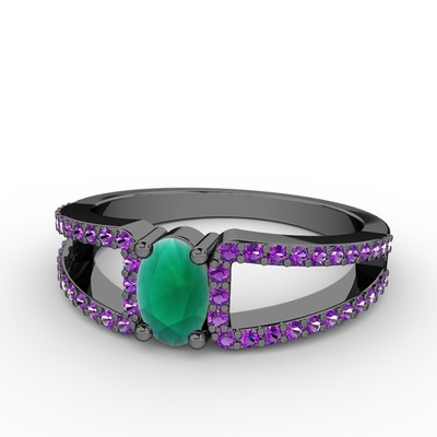 Kök zümrüt ve ametist 925 ayar siyah rodyum kaplama gümüş yüzük