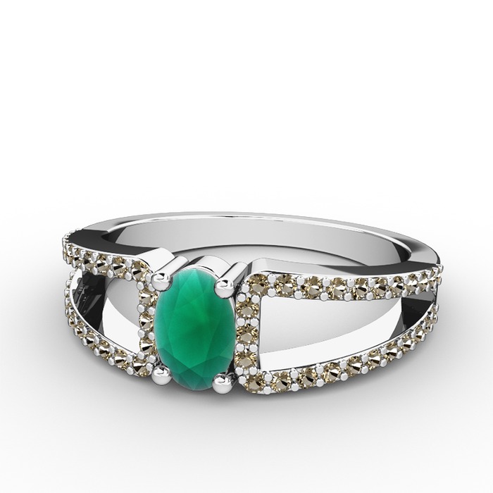 Kök zümrüt ve dumanlı kuvars 18 ayar beyaz altın yüzük