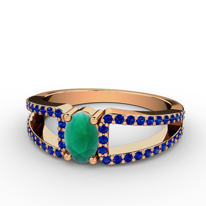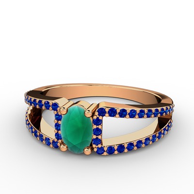 Kök zümrüt ve lab safir 18 ayar rose altın yüzük