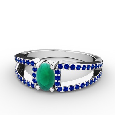 Kök zümrüt ve lab safir 925 ayar gümüş yüzük