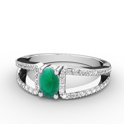 Kök zümrüt ve pırlanta 14 ayar beyaz altın yüzük (0.44 karat)