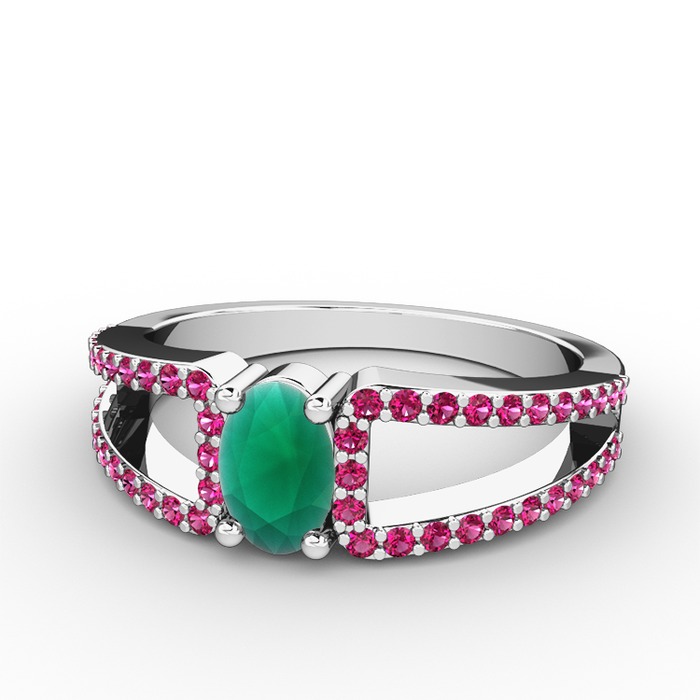 Kök zümrüt ve rodolit garnet 8 ayar beyaz altın yüzük