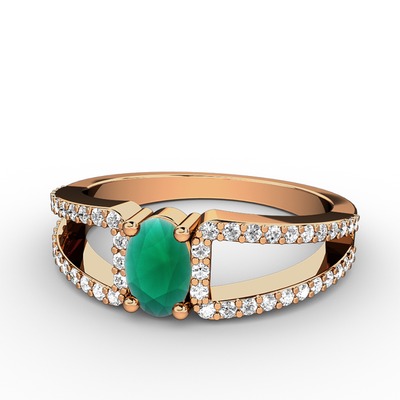 Kök zümrüt ve swarovski 14 ayar rose altın yüzük