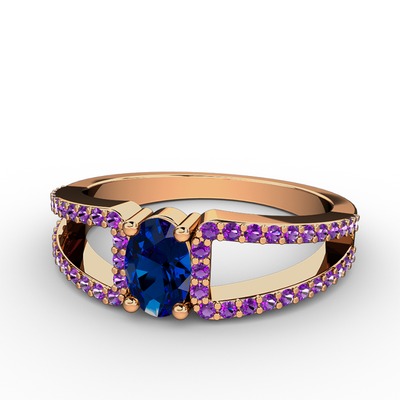 Lab safir ve ametist 925 ayar rose altın kaplama gümüş yüzük