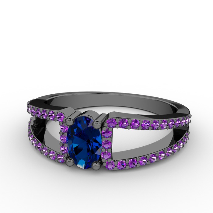 Lab safir ve ametist 925 ayar siyah rodyum kaplama gümüş yüzük