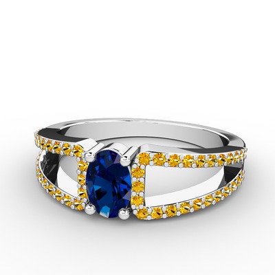 Lab safir ve sitrin 8 ayar beyaz altın yüzük