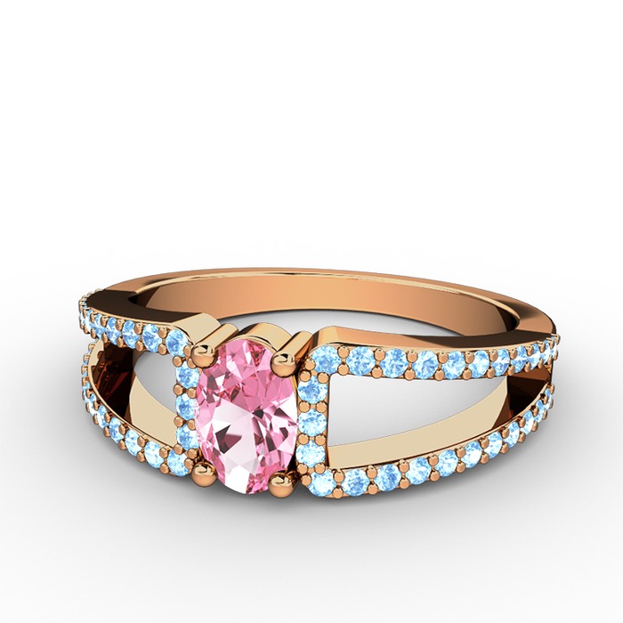 Pembe kuvars ve akuamarin 925 ayar rose altın kaplama gümüş yüzük