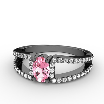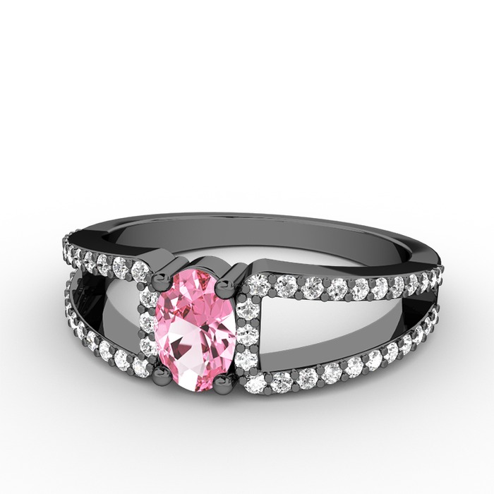 Pembe kuvars ve beyaz zirkon 925 ayar siyah rodyum kaplama gümüş yüzük