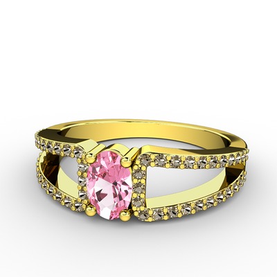 Pembe kuvars ve dumanlı kuvars 14 ayar altın yüzük