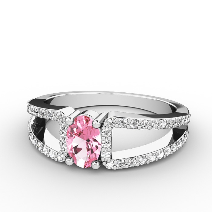 Pembe kuvars ve pırlanta 18 ayar beyaz altın yüzük (0.44 karat)