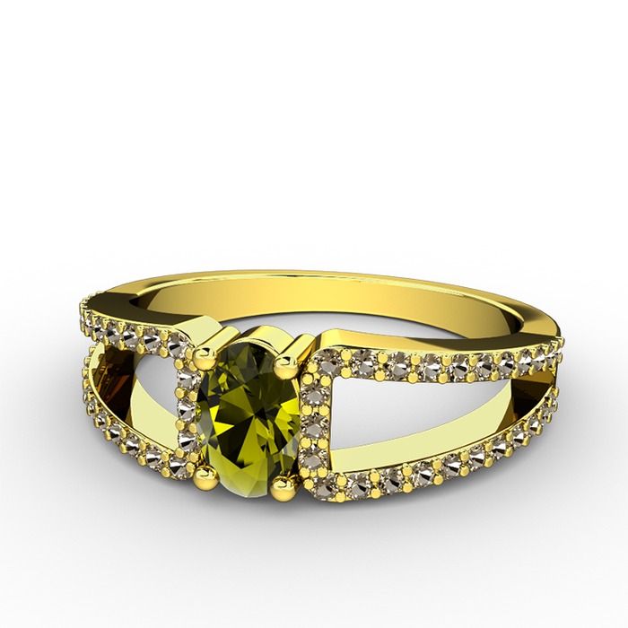 Peridot ve dumanlı kuvars 925 ayar altın kaplama gümüş yüzük