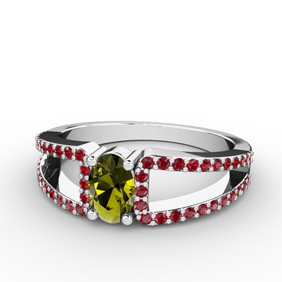 Peridot ve garnet 8 ayar beyaz altın yüzük