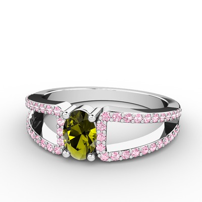 Peridot ve pembe kuvars 18 ayar beyaz altın yüzük