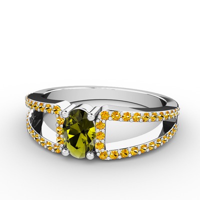 Peridot ve sitrin 8 ayar beyaz altın yüzük