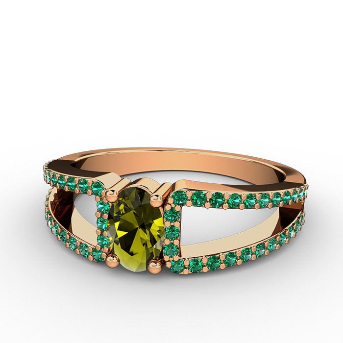 Peridot ve yeşil kuvars 8 ayar rose altın yüzük