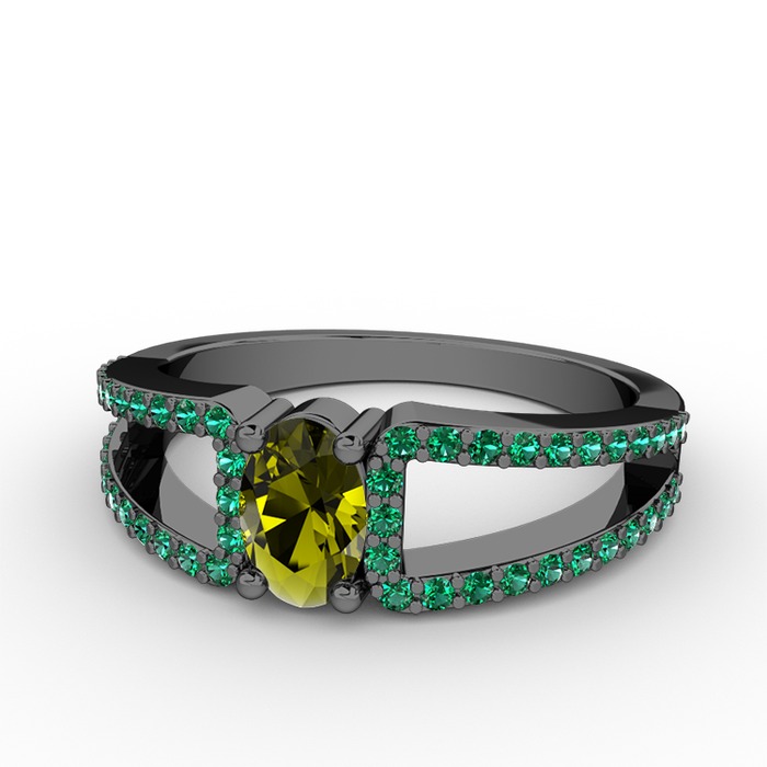 Peridot ve yeşil kuvars 925 ayar siyah rodyum kaplama gümüş yüzük