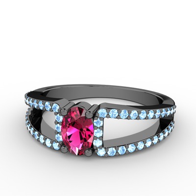 Rodolit garnet ve akuamarin 925 ayar siyah rodyum kaplama gümüş yüzük