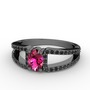 Rodolit garnet ve siyah zirkon 925 ayar siyah rodyum kaplama gümüş yüzük