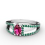 Rodolit garnet ve yeşil kuvars 14 ayar beyaz altın yüzük