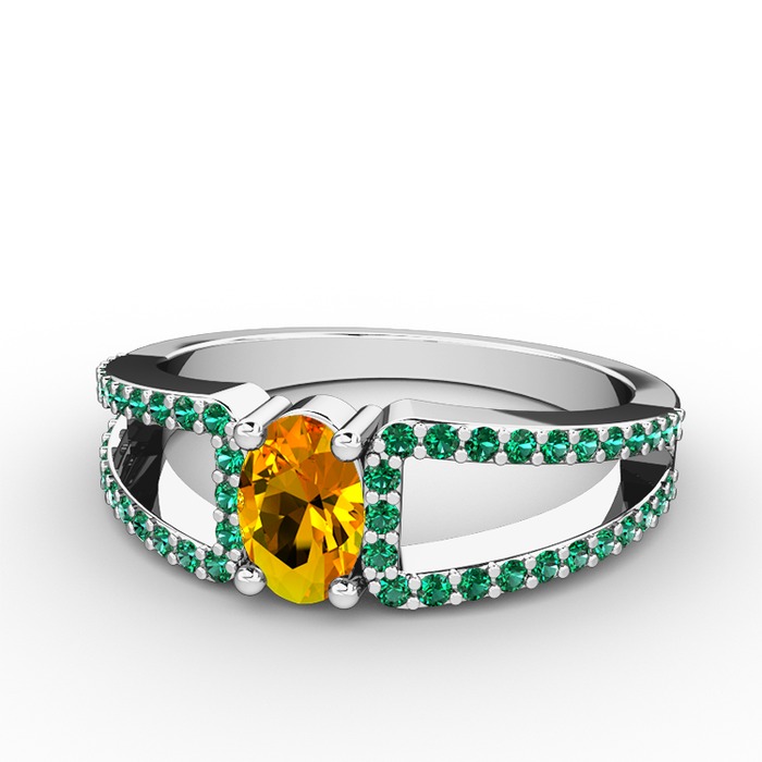 Sitrin ve yeşil kuvars 14 ayar beyaz altın yüzük