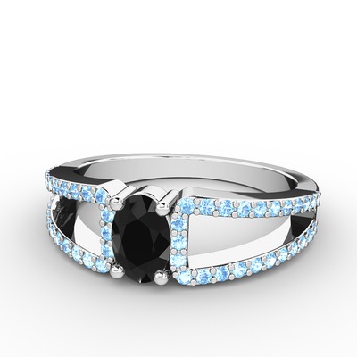 Siyah zirkon ve akuamarin 14 ayar beyaz altın yüzük