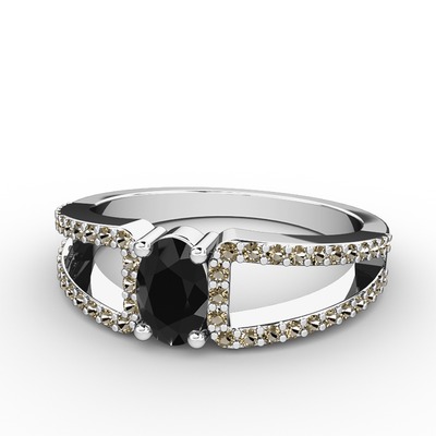 Siyah zirkon ve dumanlı kuvars 14 ayar beyaz altın yüzük