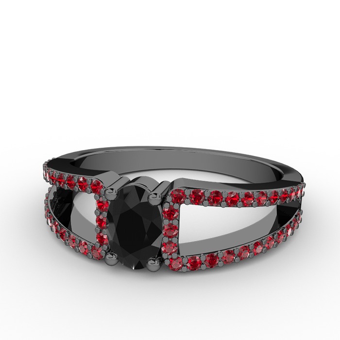 Siyah zirkon ve garnet 925 ayar siyah rodyum kaplama gümüş yüzük