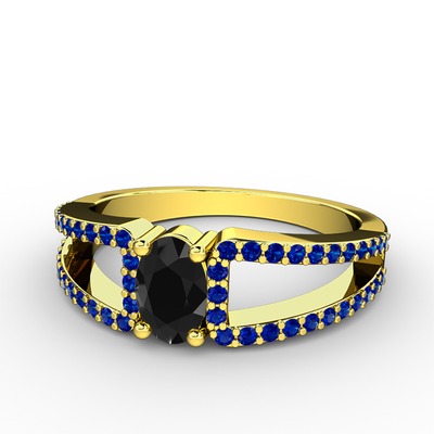 Siyah zirkon ve lab safir 8 ayar altın yüzük