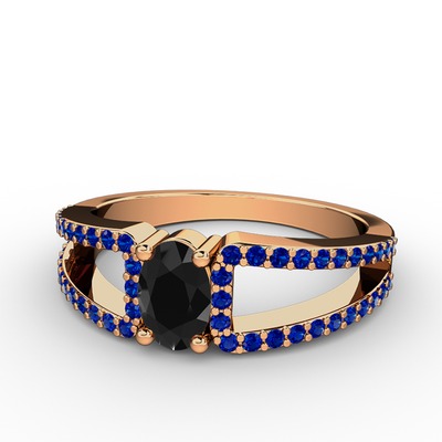 Siyah zirkon ve lab safir 8 ayar rose altın yüzük