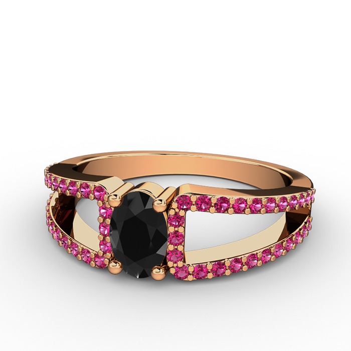 Siyah zirkon ve rodolit garnet 14 ayar rose altın yüzük